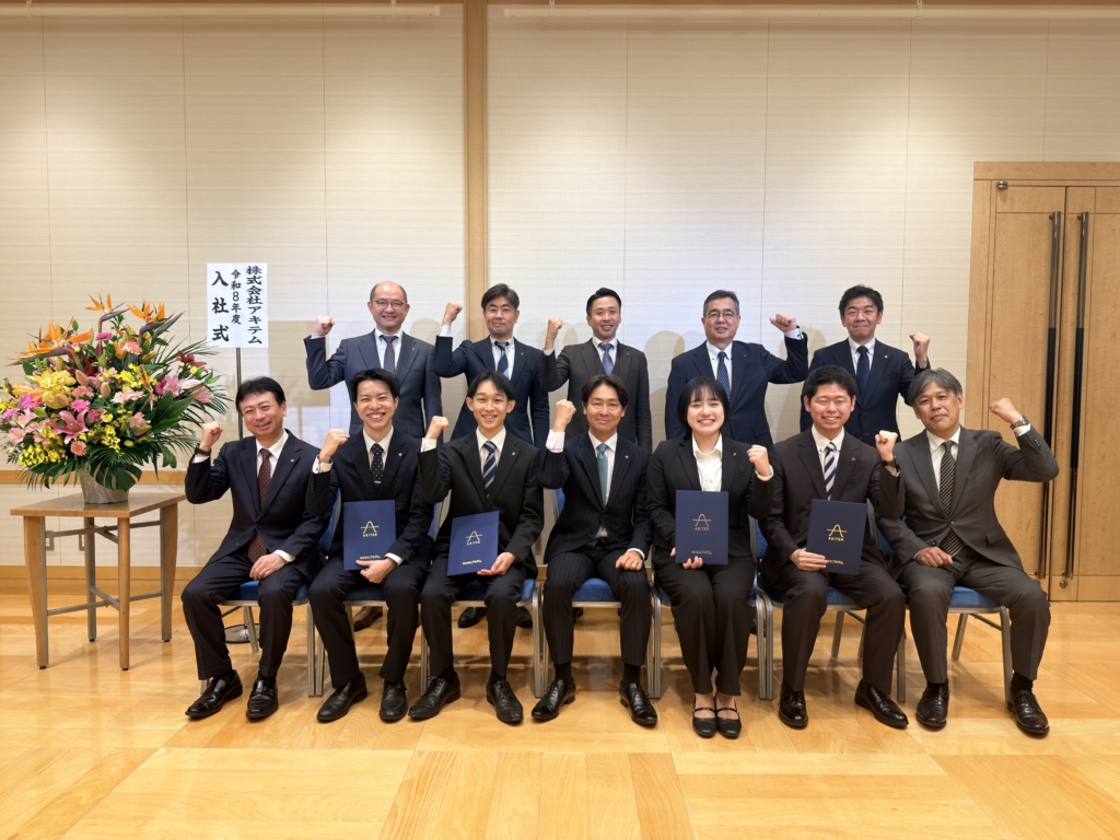 入社式では、社長をはじめとする経営幹部より、新入社員に向けて温かいお祝いのメッセージが贈られたほか、新入社員からも決意表明の挨拶が行われ、社会人としての第一歩に向けた意気込みが語られました。